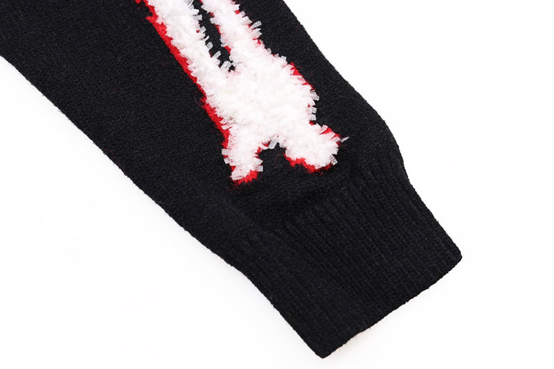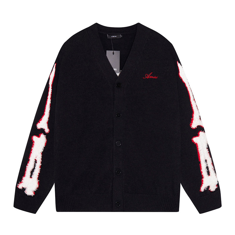 Cotton V-Neck Bones Cardigan Sweater Black