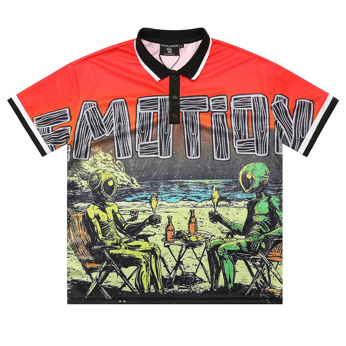 Red “Paradise” Button Up Tee