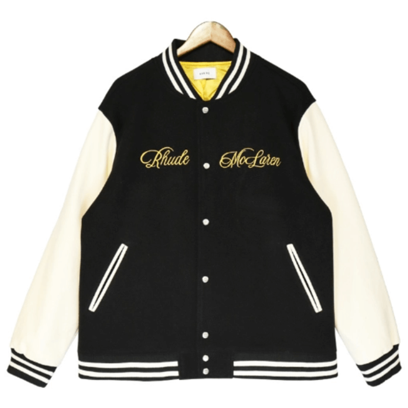 RHUDE Floral Embroidery Emblem Wool Tweed Baseball Jacket #Black
