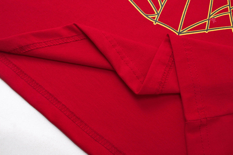 Spider Web Print Gothic Punk T-Shirt Red